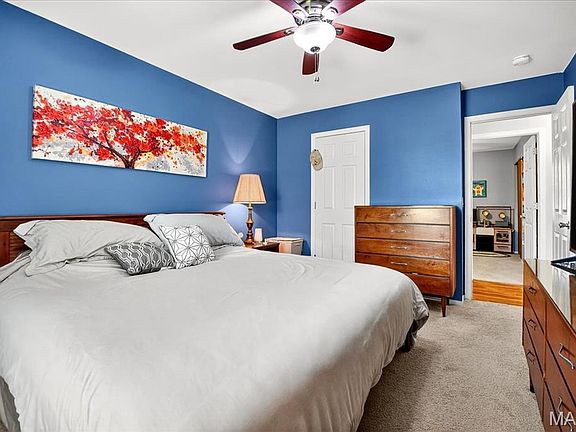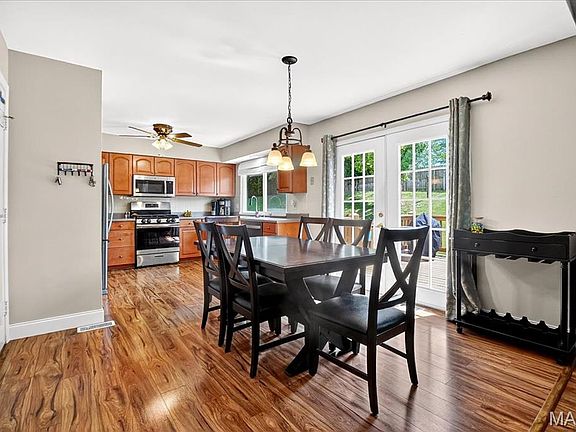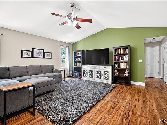 This charming 3 bed 2 full bath open-floor-plan ranch is move-in ready and full of updates. Step inside to be greeted by vaulted ceilings and neutral decor, creating a bright, welcoming feel. The kitchen is a showstopper with stainless steel appliances, a ceramic tile backsplash, pantry, and raised-panel maple cabinets with satin nickel pulls. The primary suite offers a private full bath, while two additional bedrooms and a full hall bath complete the main level. The finished lower level adds incredible living space with a family room, rec room, office, bonus room, storage, and a large laundry area—new carpet installed just last year! The exterior boasts siding with decorative brick and a two-car garage, plus a spacious backyard with a 24x14 deck—perfect for entertaining or relaxing outdoors. 7 yr new roof! New HVAC 2022! Enjoy the amenities of this wonderful neighborhood, including in-ground pools, tennis courts, clubhouse, a fishing lake, and many community activities—all within the desirable Francis Howell School District. Don’t miss your chance to own this gem in the heart of St. Peters!