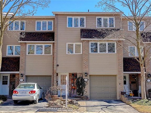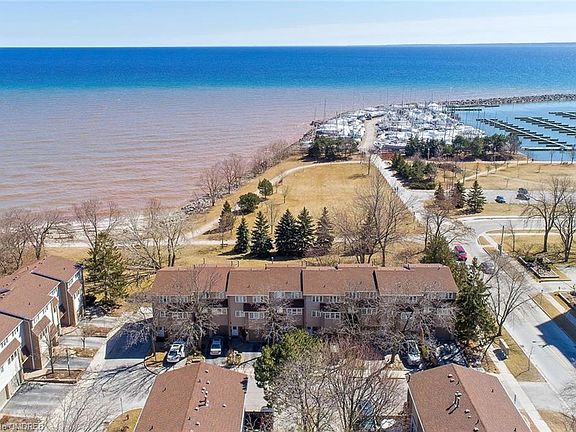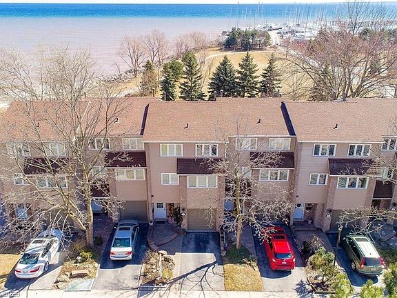 EXECUTIVE WATERFRONT TOWN HOME - 3-bedroom waterfront town home in trendy Bronte has hardwood flooring, California shutters and newly painted throughout; both walk-out access to and spectacular views of Lake Ontario, Waterfront Trail and Bronte Outer Harbour. Ascend to the bright living room with its featured corner gas fireplace with marble surround and threshold; 11' soaring ceilings; crown molding; and sliding glass doors leading to a 200 sq ft terrace with unobstructed waterfront views and spiral staircase to the lower patio. Well-planned, spacious kitchen with granite countertops and backsplash and ample upper and lower cabinets. Separate dining room overlooks the living room featuring a trendy glass block wall offering architectural detail and diffused light. The master retreat on the upper level has a walk-in closet; newly renovated, 3-piece bath; and window seat to view the Lake and surrounding, natural setting. Two additional bedrooms and second en-suite complete this level. Enjoy ground level sliding door access to the private, covered flagstone patio and rear garden. A 2-piece bath; family room with wall to wall bar; and a utility room are also located on the ground level. Direct access to garage from front foyer. 11 East Street is located at the south end of East Street between Marine Drive and Ontario Street in Bronte overlooking Bronte Heritage Waterfront Park and Lake Ontario. The Waterfront Trail is at your doorstep along with Bronte Outer Harbour Marina, Fisherman's Wharf, parks, shopping and all the great restaurants, wine bars and coffee shops in Bronte Village. Easy access to the 403, QEW and the GO train.