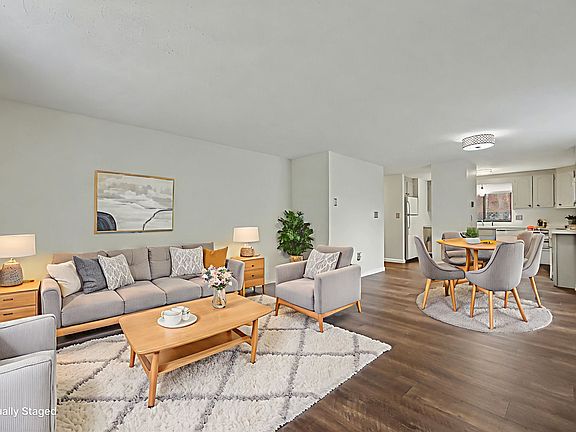 Welcome to Essex Green. This ranch-style townhouse offers easy one-level living with no stairs or basement. It includes 2 bedrooms, 1 bath with a walk-in shower, first-floor laundry, and a detached one car garage. The home has brand new laminate flooring, fresh paint, new blinds, new light fixtures, and a new in-wall A/C unit. The natural gas heater was installed in 2016. Enjoy the covered front porch and the large private back patio, perfect for relaxing during the warmer months. *OPEN HOUSE Saturday November 15th from 10:00am-12:00pm.