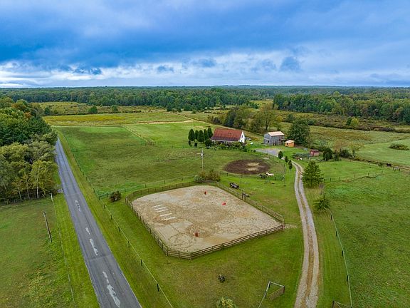 Working Horse Ranch w/ 59 acres m/l in the charming location of Stoneboro, Pa. in Sandy Lake Township. 2 barns with 7 stalls, chicken coop, 7 fenced in pastures with white coat top line. 30 acres in rear of property. 20 wooded. Front separate building includes office, barn with full attached bath, business possibilities. Blueberry bushes, peach, pear, and apple trees. Fenced in garden, 100×110 outside corral for training. Separate run and shed for principal mare. Wrap around decks.