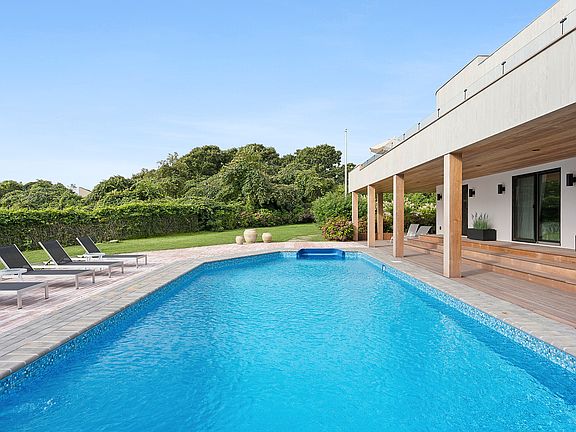 Rental Registration #: 22-1569 Sited on over an acre and tucked away on a dead end road, this Montauk beach house has sweeping views of the Atlantic ocean, and a carved path on the south side of the property leads to the ocean just moments away. Approximately 600 feet away from the beach access and roughly a mile to Montauk town, this contemporary home offers a total of 3,600+ sq ft of living spaces on three levels, and has an upside down layout with open and airy living spaces. Upstairs, the great room and kitchen have rows of sliders facing the ocean. This spacious level offers a great room with cozy fireplace, bar area, kitchen with center island, dining area, pantry, and a half bath. A deck along this level offers a great place to dine outdoors and enjoy the sea views. There is also a stair leading to a rooftop deck perfect for watching the sunrise over the ocean, or lounging in the warmer months. On the first floor, there are four bedrooms including the primary suite with private luxe bath and access to the pool area. Down the hall, there is full bath, two guest bedrooms each with sliders to the covered patio, and a third guest bedroom with its own full bathroom. The finished lower level has been updated with a recreation room, full bathroom, large guest area with private access in and out. There is also an attached garage great for storage. The exterior is well-maintained with professional landscaping, a pool surrounded by brick terrace, spacious yard, and a private gate leading to a short path down to the beach access across the street. Recently updated with all new siding, decking, and interior alterations to even further enhance this gorgeous home in an ideal setting.