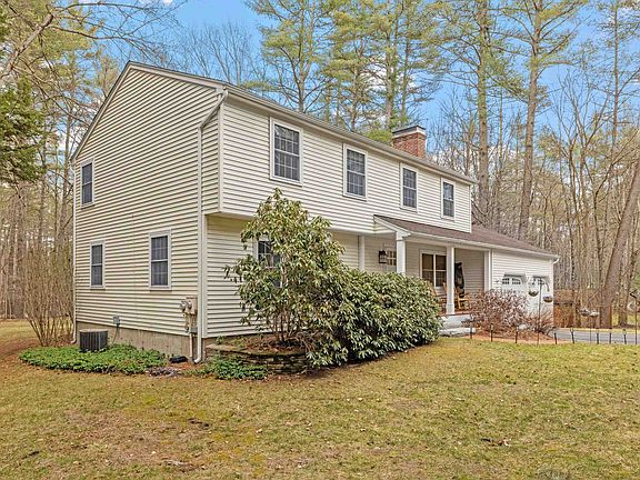 This wonderfully updated home shouts WELCOME HOME from the moment you step inside! Sit on your spacious covered porch and enjoy the babble of a pretty seasonal stream framing the woods of the 37 acres of common land beyond. Inside, you'll find a spacious entry foyer with custom tile, gorgeous hardwood floors that run throughout most of the house and a straight-from-a-magazine kitchen with custom cabinetry, crown moulding, under-cabinet lighting and newer appliances. The dining area is flooded with natural light & your living room connects easily with the kitchen and features a large bay window. A well-lit family room/office/playroom centered on a brick fireplace, offers access to the kitchen, handy laundry/mudroom and updated 1/2 bath. Upstairs the large primary bedroom suite has 3 closets and room for an oversized king, sitting area and maybe even your Peloton! 2 more well-sized bedrooms each with wood floors & a full updated bath complete the 2nd floor. Maintained over the years, the windows and doors have been replaced, the roof is just one year old, new hardwood floors, fresh paint and all systems, including furnace and central a/c, have been regularly maintained. Generator ready, high posted 2 car garage and EV charger too! This friendly neighborhood is close to everything--a quick walk to golf, just 6min to schools, 9min to the Village, and 11min to Rt 3. Come see for yourself! Quick close Possible. OFFER DEADLIINE Tuesday 4/1 @ 4pm.