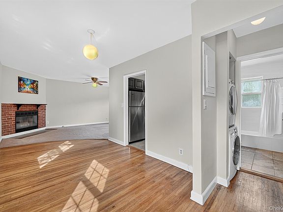 Discover the charm of this bright 1100 sq. ft. top-floor end unit at 11 Fieldstone Drive, Unit 130, Hartsdale, NY, offering a blend of comfort and convenience. This inviting home features a cozy wood-burning fireplace, perfect for creating a warm ambiance on cooler evenings. The kitchen is equipped with sleek quartz countertops and stainless steel appliances, making meal preparation a pleasure. Enjoy the ease of having a Bosch washer and dryer right in your unit. The open-plan living and dining area is ideal for entertaining, with the added bonus of being able to barbecue just outside your front door. Step outside to find a playground and pool just across the street, offering fun and relaxation for all ages. Parking is plentiful, and with easy access to highways, shops, and public transportation, your daily commute is a breeze. Plus, you're just a short drive away from Metro North, perfect for a quick trip into NYC. Embrace the opportunity to make this delightful space your new home!