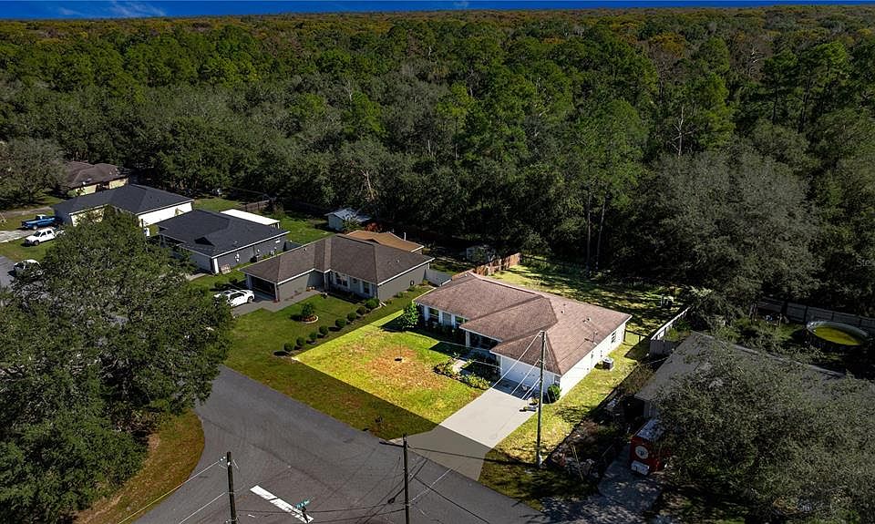 One or more photo(s) has been virtually staged. Welcome to this beautifully maintained 4-bedroom, 2-bathroom home in Ocala, Florida, built in 2019 and offering just under 1,600 square feet of thoughtfully designed living space. Tucked away on a peaceful cul-de-sac, this home boasts incredible privacy with no rear neighbors, as it backs up to the federally protected Marjorie Harris Carr Cross Florida Greenway trail system. Imagine stepping into your backyard and enjoying the tranquil sounds of nature with views of lush greenery and wildlife—all while being only 3 miles from the Baseline Road Trailhead, one of the most sought-after outdoor recreation spots in Central Florida. From the moment you arrive, you’ll be greeted by mature landscaping, a charming covered front porch, and a completely fenced yard, creating a warm and welcoming first impression. Inside, the home opens to a bright and airy open-concept floor plan designed for modern living. The spacious kitchen features an oversized granite island, stainless steel appliances, shaker-style cabinetry, and tile flooring in all wet areas, making it both stylish and functional. It’s the perfect gathering space for friends and family to share meals, laughter, and memories. The primary suite is a private retreat, showcasing a tray ceiling, granite vanity, and a step-in tiled shower for a touch of luxury. The indoor laundry room adds convenience and organization to your daily routine. Every corner of this home has been carefully maintained, making it truly move-in ready. Perfectly positioned in one of Ocala’s most desirable areas, this home blends the best of comfort, privacy, and outdoor living. Whether you enjoy biking, hiking, or simply relaxing in your quiet backyard oasis, this property provides the ideal Florida lifestyle.