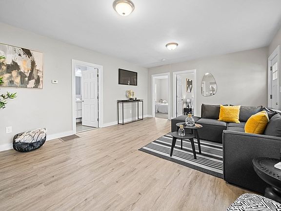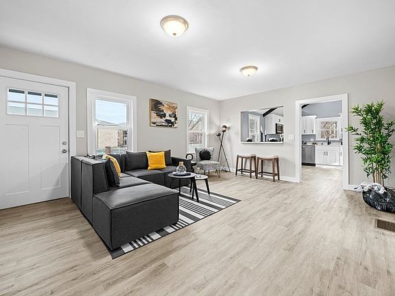 WOW!! Fantastic turnkey home with beautiful updates and huge yard perfect for family or entertaining. Don't let its size fool you - Brand new flooring, new fixtures and fresh paint throughout this home make it feel twice as big! The eat-in kitchen boasts new white maple shaker style cabinets, quartz counters and new stainless steel appliances with breakfast bar and passthrough to the living area. Two ample sized bedrooms with new carpet and recessed lighting share a beautiful new jack-and-jill bathroom, with double vanity and tiled tub/shower. The bright clean basement offers tons of storage space and laundry hookups. Huge yard and plenty of parking. Updates include all new windows and doors, new roof and gutters, new heating system and hot water tank, and all new plumbing and 200 amp electrical. It's ALL DONE - there is nothing left to do! Start the new year off in your new home!