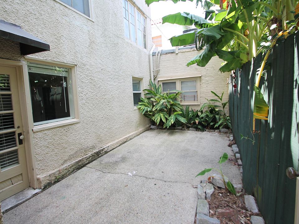 This great place has it all, and the rent includes water and trash service. Private entry through a private courtyard, central air and heat, new kitchen with microwave, dishwasher, stove and ref. Tiled floors. Separate bedroom. Bath with designer shower. It even has access to a common laundry in the building.