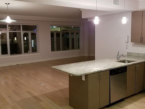 Beautiful large apartment! This apartment has very large windows that will bring in the morning sun and where you can watch the sunset at night. The bedroom is very spacious with a walk-in closet and two others. The Bathroom is HUGE! There is a separate laundry room with a washer and dryer stack unit and plenty of room to move around. A great kitchen with modern appliances and plenty of cabinet space plus a center island that can seat 6 people. Hardwood floors throughout, carpet in the bedroom and a marble bathroom. This is an AMAZING apartment that when you see it, I'm sure you will fall in love with it. Parking spaces available $100.00 per space