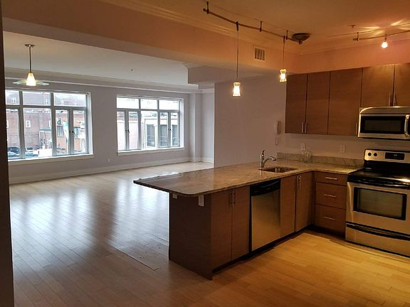 One br luxury apt in modern urban bldg. in the heart of downtown Stamford! This sunfilled unit offers great space! Updated open kitchen w stainless steel appliances that opens into dining/living room, w/ pickled oak floors, 9 ft plus ceilings, lots of windows, large bedroom w/ oversized walk in closet, beautiful marble bathroom, fresh paint, central air conditioning, full size washer dryer in unit, storage area, 1 garage parking space, pet ok, flexible lease term, elevator bldg unbeatable location in the heart of vibrant downtown Stamford -walk to metro north train, just steps from restaurants, shops and nightlife, minutes to highways and beaches- spectacular must see unit!