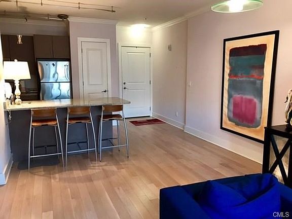 One br luxury apt in modern urban bldg. in the heart of downtown Stamford! This sunfilled top floor unit offers great space! Updated open kitchen w breakfast bar and stainless steel appliances that opens into dining/living room, w/ pickled oak floors, 9 ft plus ceilings, large bedroom w/ oversized walk in closet, beautiful marble bathroom, fresh paint, central air conditioning, full size washer dryer in unit, 1 garage parking space, pet ok, flexible lease term, elevator bldg unbeatable location in the heart of vibrant downtown Stamford -walk to metro north train, just steps from restaurants, shops and nightlife, minutes to highways and beaches- spectacular must see unit!
