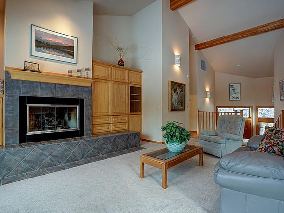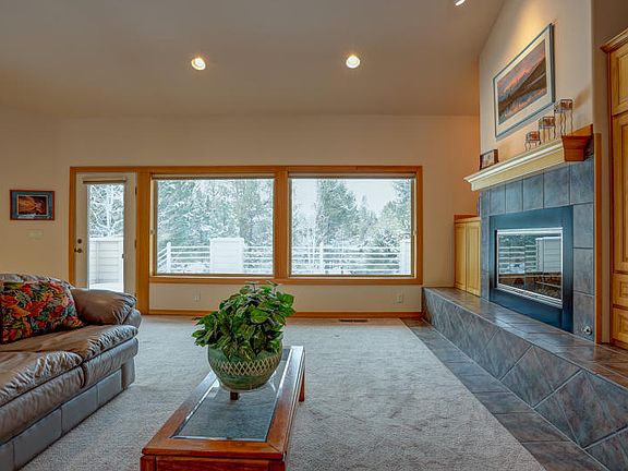 Great Resort Location in Fairway Point Village-Sunriver! Over 2700 sqft., vaulted open-beam Great Room w/gas FP, large open dining/kitchen area w/wood-lam floor, island/B-Bar, SS appl, pantry, hickory cabs, main level master w/private office-sitting area, family rec room w/pool table, additional sleeping nook, oversized garage w/hot & cold water, 3 deck areas, 2-zone Gas Heat & Central AC, Central VAC, Recirculating HW, mostly furnished, Big corner lot bordering large common area for additional privacy!