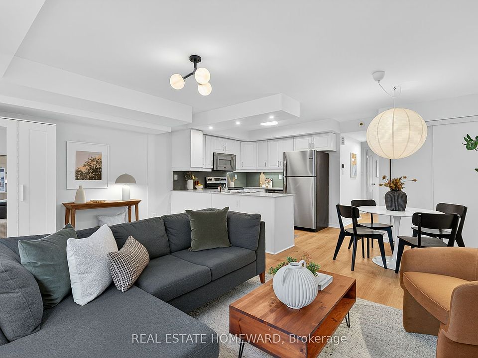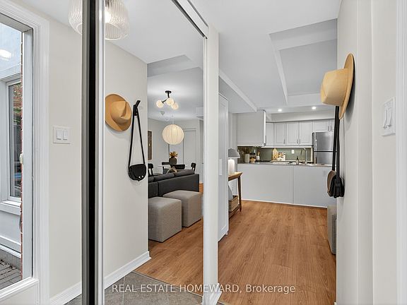 Come find out what's behind door #1... full of surprises, this 2 bedroom, 2 bathroom townhouse in the coveted Rivertowne community offers not just the home, but the lifestyle you've been searching for. Enjoy your morning coffee on the private east-facing back patio and golden-hour drinks on the west-facing front terrace as friends and neighbours pass by to say hi. If happy hour on the patio turns into a spontaneous dinner party, you have the perfect open flow space to entertain all night. Picture walking home from work everyday through the tree-lined footpaths in this warm community, right up to your front door - no elevator waits involved. Inside and out, its the best of both condo convenience and freehold neighbourhood vibe. The kind of place you can grow into as life unfolds, in a neighbourhood you'll never want to leave. South Riverdale's energy, charm and endless amenities are at your doorstep. For the green-seekers: Joel Weeks Park sits at the foot of your street, Jimmie Simpson Park is just around the corner, and Riverdale Park - with its iconic city skyline views - is only a short stroll away. For the vibe-seekers: Queen East offers lively shops, trendy cafés, and one of Torontos best food scenes. And for the workaholics: don't stress - you're still just minutes from Downtown. Not one but TWO parking spots (and lots of visitor parking!), a bike locker and a storage locker adds to convenience, and you're already set with high-speed Beanfield internet (no lag for your Netflix binge). It's no wonder why this townhouse is #1 in both the address, and your heart. No agent? No problem. Reach out directly - we'd be happy to arrange a private showing.