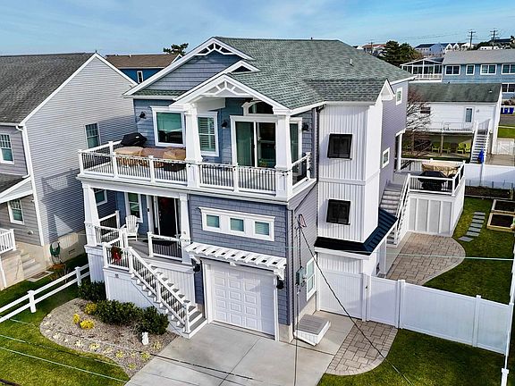 Stunning home which effortlessly combines luxury, comfort, quality, and modern amenities! Only 2 Blocks walking distance to the Pristine Brigantine Beach and Bay! Immaculate, built in 2019 by Herndon builders shows like new construction. Reverse living allows for an abundance of natural light in the bright and open floor plan , which features cathedral ceilings, a cozy fireplace, beautiful white gourmet kitchen with SS appliances, tiled backsplash, a large island complete with counter height seating, and walk in pantry. Ideal for entertaining family and or friends! The dining area also features a shiplap accent wall, tray ceiling, and modern light fixtures throughout. The 2nd floor also features the sizable master bedroom, luxurious spa shower, and walk in closet. The 1st floor has spacious 3 bedrooms including an on-suite bedroom, a family room complete with a wet bar that leads to a spacious outdoor deck to entertain or just relax. The elevator starts in garage up to 2nd fl. Home has an abundance of storage areas including underneath the entire 1st floor ! All this to love, situated on an oversized fenced-in lot with an enclosed outdoor shower. The Beach home you've been waiting for is now on the market !
