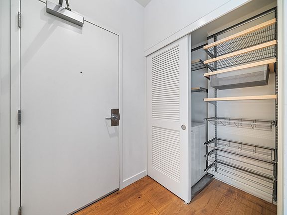 Located in trendy Hayes Valley, this sleek 1-bedroom, 1-bathroom condo offers the best of modern city living with a desirable open floor plan. The fully equipped kitchen features a Bertazzoni Range, Silestone quartz countertops, and American-made cabinets. The combined living and dining room is accented with wide plank oak flooring and opens onto the east-facing balcony. The en-suite bathroom includes a shower over the tub and Grohe plumbing fixtures. In-unit washer and dryer, closet organizers, and custom blinds complete the offering plus a potential bicycle space. Enjoy access to the large rooftop deck, spacious BBQ area, and sweeping views of San Francisco. The property is surrounded by food, culture, and everything else you could need in a vibrant neighborhood. This 8-story building features 35 units with easy access to freeways and public transportation. Pictures are from a prior staged unit.