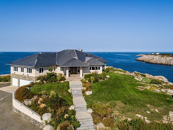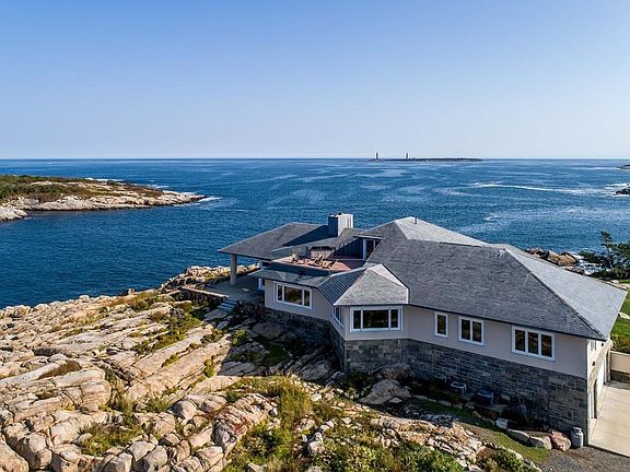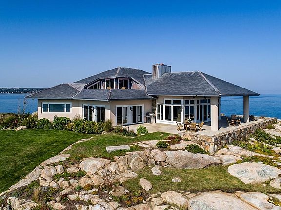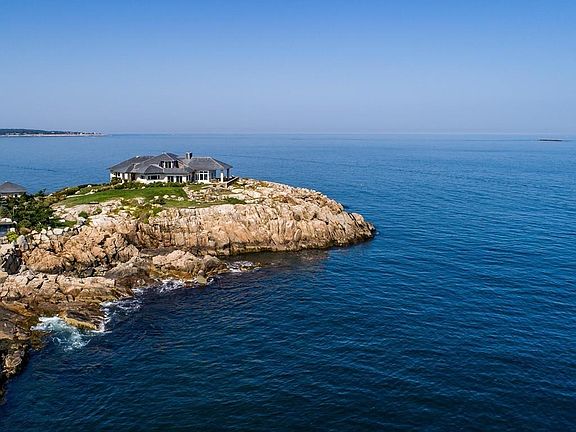 Sited prominently on its own 2 ac. peninsula, this extraordinary property surrounds you with mesmerizing views of the majestic ocean, nearby islands, and rocky inlets. The setting provides a one-of-a-kind intimacy with the ocean's lapping waves and the sky's amazing hues at sunrise and sunset. "Stone Haven" was originally built to exacting standards by world-renowned naval architect WF Gibbs, who designed and built more than 70% of the US naval fleet for WWII. Extensively renovated, including 4,400 sf primarily on one level, the residence has a sophisticated, contemporary design with an abundance of oversized, storm proof windows, affording sweeping views from every room. The living room is magnificent with a 17ft beamed, cathedral ceiling and a soaring granite fireplace. There is an amazing chef's kitchen and master suite with sitting rm. and luxurious custom master bath. Amenities include radiant heat, central air, elevator, electric shutters, security, slate roof, 4 car garage.