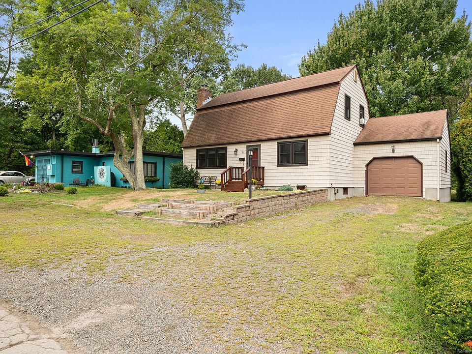 Welcome to Glenwood Park S! Just a short walk to Pequot Ave beaches, this 3 bdrm, 2 bath, Gambrel Colonial style home on dead end street offers Lr with fireplace, eat in kitchen, dining room, family room with sliders to large rear deck, 1 c attached garage, full basement with a partially finished heated room. Oil heating on first floor, electric heat on second floor and basement. Updated windows and refinished yellow pine wide board floors.