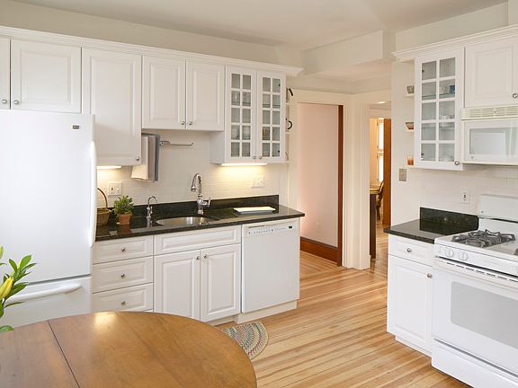 Meticulously restored 4-bedroom, 2-bath West Cambridge residence on the top two floors of a Gambrel-roof three-unit association. Enjoy treetop views of the neighborhood from this light-filled home. Close to Huron Village, Observatory Hill and Fresh Pond. Main living level features refinished heart-of-pine flooring. Custom-built cabinetry and bookshelves in living room. Pocket doors between inviting library and restored dining room with ample bay. Cheerful kitchen with butler's pantry leading to private, covered rear deck. Full-size laundry room with Asko washer-dryer. Enchanting top floor with five skylights and long-plank fir floors. Master bedroom with walk-in closet. Ample hall with custom built-ins and access to bonus storage area. Extras here include central air, energy-efficient windows and Navien tankless hot water. Good closet space and additional storage on lower level. A very rare offering.
