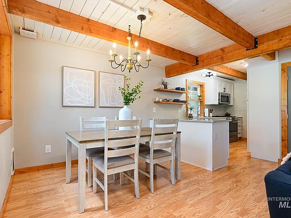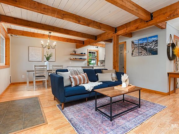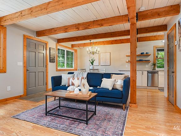 Escape to this charming, mountain retreat complete with studio/storage buildings & included RV for extra space! Located in the sought-after West Mountain area, near Lake Cascade this cabin provides easy access to both winter & summer activities. A stone's throw away from Campbell Creek boat ramp & Anderson Creek Snow Park-adventure awaits! This turnkey cabin has been newly remodeled with Quartz countertops, a generous bar, stylish cabinets, & stainless steel appliances. Upstairs, discover the bedroom & loft area, perfect for a home office or extra sleeping. Brand new roof & large entertaining deck. Set on .83 acres across three parcels & no HOA this property is ideal for personal enjoyment year-round, possible future building space or Airbnb rental opportunities. Ample space for storing toys, catering to outdoor enthusiasts. Venture outside to soak in the included hot tub/spa and pick endless huckleberries from your doorstep & walking trails throughout. Includes a 2005 36ft 5th wheel & other negotiable items!