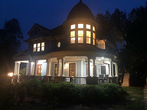 Built in 2009 (but looks like it could be 100+ yrs old), this house is a masterpiece of craftsmanship and attention to detail featuring a rounded turret, curved front porch accented by stately pillars and ceiling fans, copper gutters, 3 balconies and a large deck made entirely of mahogany.