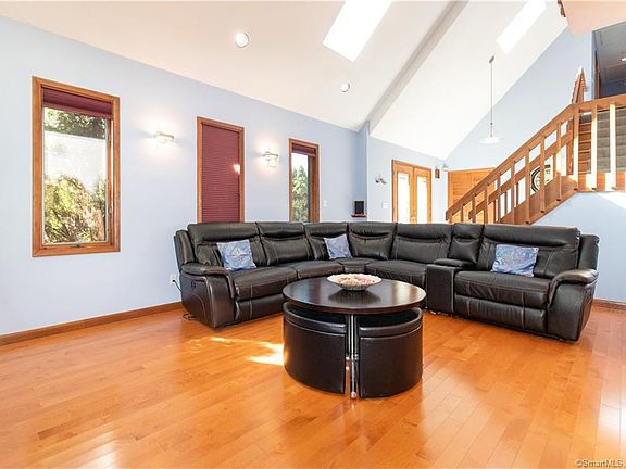 Phenomenal cul-de-sac location for this spacious and versatile colonial with totally remodeled kitchen ! Top of the Line Features include GE monogram stainless steel appliances, Granite counters, custom made cabinets by Nutmeg, and modern glass and stainless light fixtures and sconces throughout the main level. This homes inviting open floor plan with natural light streaming through its many skylights and some newer Anderson windows. A Surround sound system wired into both family and living rooms. A luxurious bathroom with a 2 person Jacuzzi, quartz counter tops with dual sinks, Floating glass vanities with integrated lighting and interior outlets. It has a 4x4 tiled shower. A second full bathroom also has dual sinks and similar finishes as the Master bathroom. A fabulous Rec. Room at the lower level with Media and Game rooms plus a full bath and a mini kitchen ideal for your own entertaining or visiting guests. Outdoor Bose speakers on the Trex Decking overlooking superb back yard leading up to the expansive wooded conservation land for privacy, peace, and quiet. Please see attachment for more details.