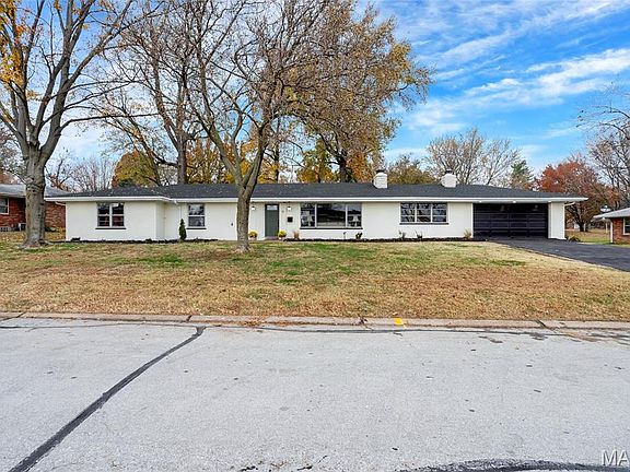 Natural light pours in through durable aluminum windows with marble sills, while a long list of thoughtful updates ensures peace of mind—updated electrical wiring, outlets, and switches, a brand-new electric panel, new gas furnace, and new electric water heater. The completely renovated kitchen shines with stainless steel appliances, updated cabinetry, and a functional layout that opens to both casual and formal spaces. Both the primary and hall baths have been beautifully updated with modern finishes that feel fresh and inviting. Outside, enjoy your mornings on the front patio, perfect for sipping coffee and greeting neighbors. A spacious rear patio offers the perfect setting for outdoor dinners, gatherings, or just relaxing under the stars. The new asphalt driveway, new garage door & opener, new roof and new high efficiency gas furnace provide major peace-of-mind. Landscaping has been refreshed, the yard cleaned up, and a nicely sized aluminum shed adds storage for tools or hobbies. Downstairs, the clean, bright unfinished basement offers a walk-up exit and endless potential—transform it into your dream rec room, workshop, studio, or weatherproof play space. It’s a true blank canvas with endless potential for storage, man/lady cave designs or weather proof play space. If you're seeking a ranch home with space, updates, and thoughtful design both inside and out—this is the one. Don’t miss your chance to call it home! Fireplaces are AS IS. Minutes from Boeing, Mallinckrodt, highways, Lambert Airport, shopping and restaurants, this location has it all!
