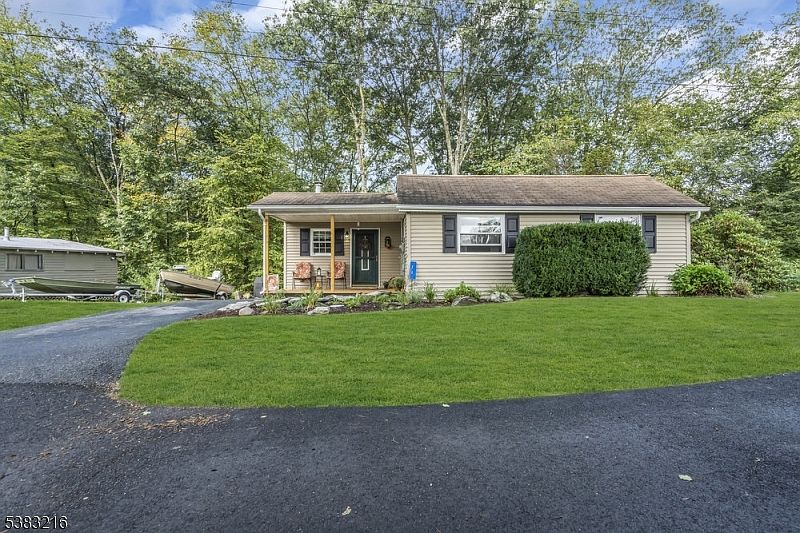 Welcome to this beautifully maintained 1-bedroom, 1-bath home in the private Hunts Pond community of Fredon Township. Set on a peaceful lot with a welcoming front porch, stone walkway, and garden accents, this home offers the perfect blend of charm and comfort. Inside, the open layout is bright and inviting, featuring wood-clad ceilings throughout, abundant natural light, and seamless flow from the living room to the dining area and kitchen. The kitchen boasts natural wood cabinetry, generous counter space, and sliders leading to a deck overlooking serene wooded views ideal for morning coffee or entertaining. A versatile bonus room provides additional living space, perfect for a home office, hobby area, or guest nook. The bedroom, with vaulted wood ceilings, is a cozy retreat, complemented by a tastefully updated full bath.Outdoors, enjoy a second deck platform for grilling or gatherings, along with a small garden ready for fresh vegetables. Just a short walk away, Hunts Pond awaits - a 47-acre private lake offering year-round recreation including fishing, motor boating, kayaking, and a sandy beach with pavilion and boat launch for summer enjoyment, plus ice fishing in the winter. An added bonus: this home comes with its own deeded dock. Whether you're seeking a full-time residence or a weekend escape, this home delivers flexibility, comfort, and the best of lake living.
