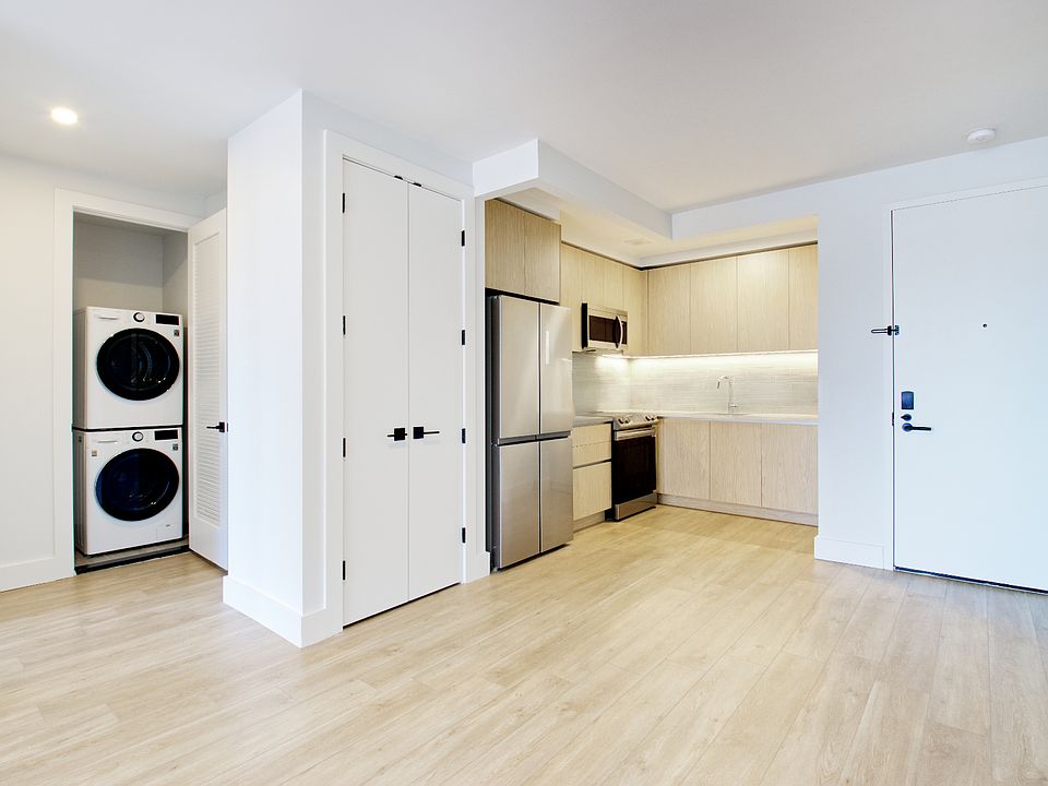 Experience the pinnacle of luxury living in our rental community. This stunning residence boasts western exposures, offering beautiful views of Lower Manhattan. Inside, you'll find condo-style finishes, such as custom window walls, 9.5-ft. ceilings, contemporary light fixtures, lacquer kitchen cabinets, pure white quartz countertops and an integrated dishwasher. Topped with an in-unit LG washer/dryer, along with a 2-zone cool/heat system.