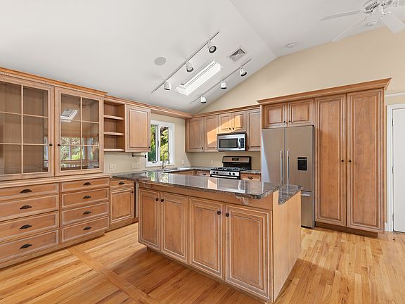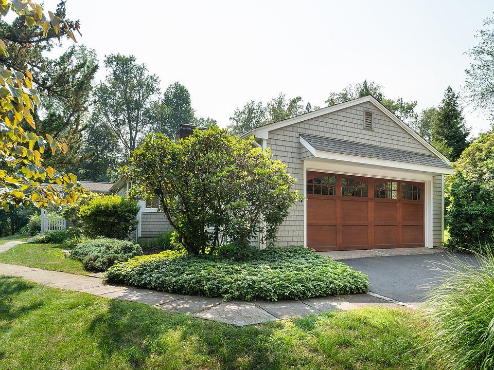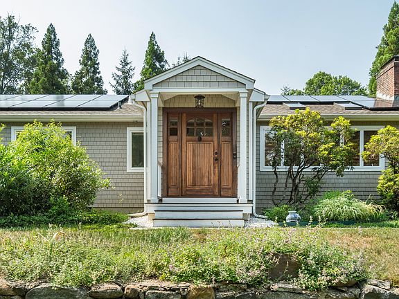 This beautifully maintained home sits on a sought-after cul-de-sac within walking distance to Long Lots, Bedford, and Staples. Set on 1.2 acres of lawn and gardens, the open-concept interior features soaring ceilings, skylights, and hardwood floors. The updated kitchen boasts granite counters, brand new Miele appliances, and a sunny den with built-ins and patio access. Four bedrooms include a spacious primary suite with a renovated bath, steam shower, custom cabinetry, and French doors. Enjoy single-level living plus a finished basement with fireplace, built-ins, and a versatile room with a billiard table. Outside, a bluestone patio leads to a landscaped pool, outdoor shower, and enclosed raised-bed vegetable garden. Extras include central air, a whole-house Generac generator, Tesla charger, solar panels that provide enough power to cover all electric bills, Optimum Fiber internet and Ring camera. The home is very energy efficient, making the running costs very low. Available through August 15, 2026