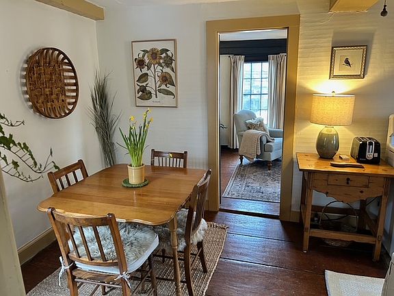 Open House SATURDAY, April 26, is CANCELLED Wide planked floors, exposed beams in First Period home (1700's). Large bedroom, eat-in kitchen and cozy living room in 2nd floor apartment of a 3 family home. House located on 1 acre lot abutting conservation land and very close walk to Newburyport 's South End, right over town line in Newbury. Space for raised bed gardens, and there are walking trails connected to the land. This apartment is a good fit for a quiet person who enjoys the charms (and challenges) of an antique home a relatively rural situation. Pets are considered, so if it is a relatively small dog, please bring him or her along. No large dogs will be considered. Electricity and water included in monthly rent. One car off-street parking. Basement storage. Dedicated washer and dryer. 1st, last and 1 month's security deposit, employer and previous landlord references. plus strong to excellent credit check. Cat or small dog considered.