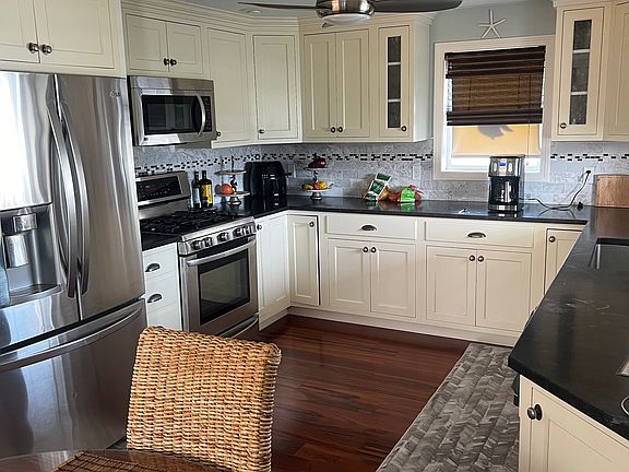 This charming 3-bed, 2.5-bath home, sleeps 6 and is walking distance to Scarborough Beach. Savor stunning water views from three private decks, perfect for morning coffee or sunset gatherings. Relax in a lush, fully fenced backyard ideal for kids or family games. Rinse off in the refreshing outdoor shower after a beach day. Enjoy a modern kitchen, high-speed Wi-Fi, and ample parking. Walk to local dining like Coast Guard House. No pets.