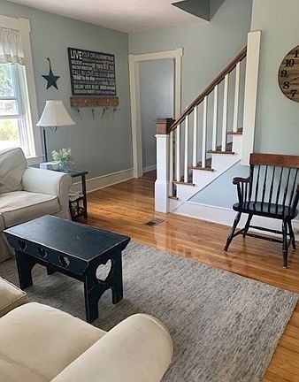 Must see! Move in ready! Beautiful above ground pool ready to be used! This home is bright and welcoming in a sought after Auburn location! Easy access to major highways! Close to shopping, markets, dining and public schools. This is a 2 bed, 2 bath home with upgrades to the heating/cooling system, a water softener, solar panels, updated bathrooms, bright kitchen with Corian countertops, light wood cabinets, stainless steal and black appliances. Exit the kitchen to a beautiful back yard offering a small deck, patio area, large above ground pool, fire pit, and 2 storage sheds with plenty of room to host your evening get togethers. The basement is partially finished with a custom built bar for entertainment, storage, and heating/cooling. The second floor offers 2 bedrooms, the main bedroom has 2 closets, his and hers with wall to wall carpet and ceiling fan with a ductless mini split. The upstairs bathroom is fully updated with full tub/shower and marble countertop.
