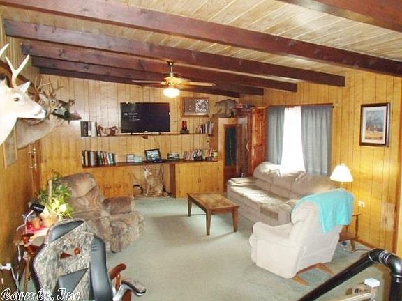 City Convenience with rural feeling, the home features a circle drive way, with beautiful daffodils that are ready in bloom. 3 Bedrooms, 1 Bath home, Large Great Room with built- in's. Kitchen offers a pantry, breakfast area, and formal dining area. Home sits on almost an acre of land, you have a storage building out back and a porch area in the front. Updates include new E-Low glass windows to the back of the house, and new 4 ton HVAC unit in 2019. This home is close to the lakes and Diamond Mine.