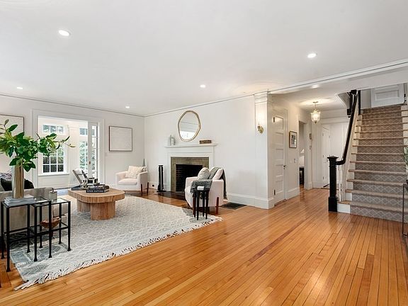 This stately stucco colonial built in 1912 offers the perfect blend of classic charm with modern day conveniences. 10 gracious rooms, 5 bedrooms, 2 full baths, and 2 half baths sit atop .44 acres of maturely manicured grounds. The elegant first floor with high ceilings includes an updated eat-in kitchen, formal dining room, expansive family room with fireplace, cozy den with fireplace, and a sun-filled front-to-back sunroom. The second floor boasts 4 generous bedrooms and 2 full baths. The third floor is flexible and is comprised of a large 25' x 12' bedroom/bonus room as well as an updated half bath. With close proximity to Warren Park, Newton Lower Falls, the Mass Pike and Rte. 95, this timeless treasure is ideally located for today's urban/suburban lifestyle!