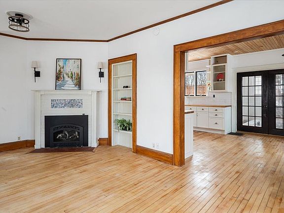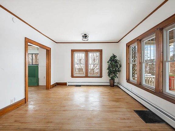 Charming, antique American Foursquare, thoughtfully updated to combine timeless elegance with modern amenities! With a vibrantly painted exterior and surrounding English hedged cottage garden that blooms beautifully year-round, this private oasis is one-of-a-kind. Inside, the custom kitchen, completed in January 2025, showcases sleek custom cabinetry & ample storage space. Enjoy the Kutch professional gas stove, wine fridge, refrigerator & dishwasher, all new in 2022. The kitchen features beautiful Danby marble & butcher block countertops, a farmhouse sink and a wall of new windows, providing a bright space for culinary creativity. The adjoining dining room has a built-in bay window seat and French doors that open to an enclosed 4-season porch with a built-in swim spa. Composite decking within the porch leads to the private outdoor deck, perfect for relaxing or entertaining. The freshly painted first floor also features a French country gas fireplace insert & a built-in bookcase, creating an inviting atmosphere. The bathroom is a true standout, featuring a wet room-style tiled shower that surrounds the original clawfoot tub, along with a unique antique wash stand with new wash basin. This home offers efficient heating and cooling, with heat pumps on each floor, hydronic baseboard heating powered by a newer propane boiler (2019) and a new hot water heater (2022.) Nestled in the heart of a wonderful neighborhood in Barre, this home is conveniently located with so much to offer!