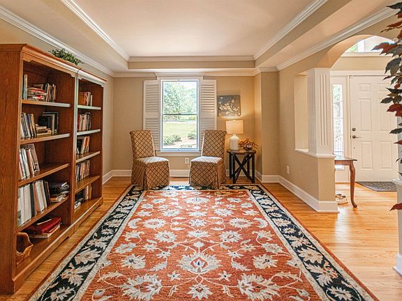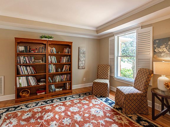 Welcome to 11 Holland East Court, an immaculate 5-bedroom, 5-bath brick home nestled on nearly an acre in an exclusive cul-de-sac of the prestigious Holland East subdivision. As you step into the bright and open two-story foyer, you're greeted by an elegant sitting room on the right, complete with a tray ceiling, heavy crown molding, and plantation shutters. Opposite the foyer, the formal dining room boasts gleaming hardwood floors, crown and chair rail molding, and large windows that flood the space with natural light. The expansive kitchen features custom cabinetry with under-cabinet lighting, granite countertops, a breakfast bar, and a separate breakfast area with a cozy brick-surround gas log fireplace. Stainless steel appliances include a wall oven, a smooth top range with a second oven, a built-in microwave, refrigerator and a dishwasher. Adjacent to the kitchen, the inviting living room offers recessed lighting, a second gas log fireplace, hardwood floors, and plantation shutters. A screened porch off the living room provides the perfect spot to enjoy your morning coffee while overlooking the serene, wooded backyard. The spacious master suite on the main level is a true retreat, featuring a third fireplace, a tray ceiling with recessed lighting, built-in cabinetry and shelves, and multiple walk-in closets. The luxurious master bathroom includes a marble surround jetted tub, a separate walk-in shower, custom cabinetry with granite countertops, and recessed lighting. An additional main-level bedroom, perfect for guests, includes plantation shutters, crown molding, built-in bookcases, a walk-in closet, and an attached full bath. Another versatile room on the main level can serve as an office, playroom, or third bedroom. The second floor offers a large bedroom with a walk-in closet and full bath, a loft area perfect for a playroom or sitting room, and another bedroom/flex room with a full bath—ideal for guests or a teen suite. Ample walk-in attic storage provides all the extra space you need. The basement level is an entertainer's dream, featuring a bedroom with a walk-in closet and full bath, a wet bar, a three-car garage with outside entry, a flex room for an office or workout space, and a workshop with a garage door for easy access. Grill on the covered deck has a gas line and will convey. Conveniently located in the sought-after Holland East subdivision, this home is must-see. The possibilities are endless in this exceptional property!