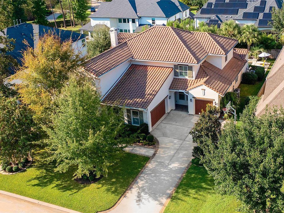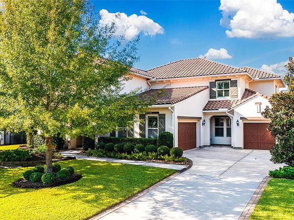 This stunning Mediterranean home is nestled in the heart of The Woodlands Creekside Village.