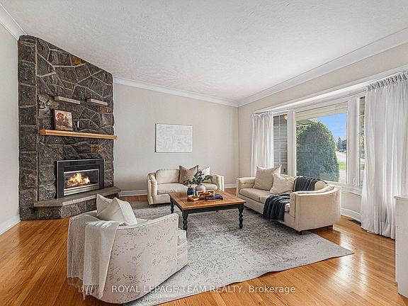 Not far from the banks of the Mighty Ottawa River, nestled on a quaint, tree-lined street, there is a mid-century masterpiece just waiting for you! This 3-bedroom, 2.5 bathroom back-split is a rare find, and a perfect blend of modern-meets-vintage design. Vaulted ceilings in the living room, a floor-to-ceiling stone fireplace, solid hardwood flooring throughout the main level and second level (under the carpet in the bedrooms too!). And a rare find a 3pc ensuite in the Primary Bedroom! The open concepted kitchen & dining spaces are perfect for entertaining with built-in pull-out drawers and organizers in the kitchen cupboards and dining hutch for all your seasonal décor and kitchen gadgets. Freshly painted main & second levels in neutral tones. The second bedroom features a built-in office, as well as access to the 3-season solarium and backyard. The fully finished basement features a large rec room space - perfect for movie nights or a games room, with built-in cabinets near the 2pc powder room and laundry room, and tons of extra storage in the crawlspace! Lakeview Park is easily one of the most well connected neighbourhoods in Ottawa; whether you're into bikes along the trans-canada trail, boats at the Nepean Sailing Club, trains via 2 future LRT stops (Moodie / Bayshore) or cars with easy access to the 416/417, this house is perfectly positioned to get you where you need to go! And just a stone's throw from Andrew Haydon Park-- don't miss out on this gem!