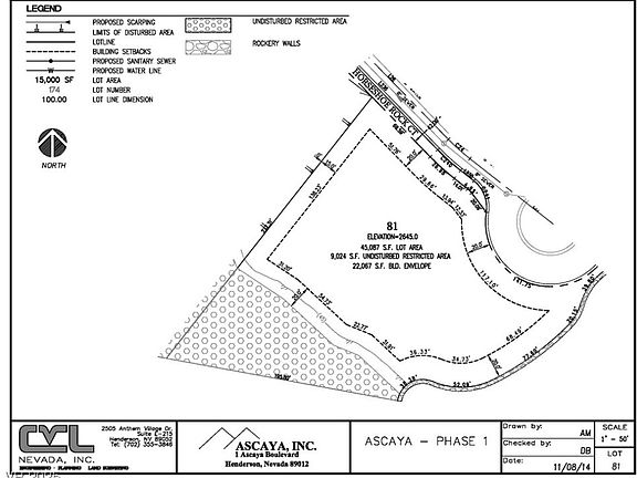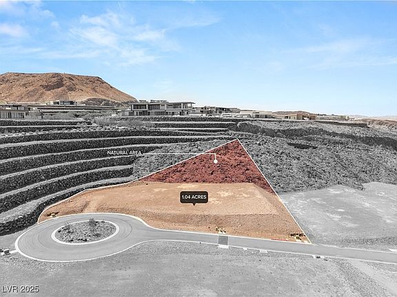 Craft your custom desert contemporary masterpiece on this oversized 1.04-acre cul-de-sac homesite in Ascaya, uniquely positioned with two natural levels that frame sweeping Strip, valley, and mountain views. Privately set and cleared, graded, and utility-ready, this rare lot offers both dramatic scale and architectural versatility, perched over 1,000 feet above Las Vegas for unmatched perspective. Residents enjoy a 23,000 sq ft clubhouse with fitness, resort-style pool, tennis, pickleball, basketball, and elegant event spaces. Outdoor living is elevated with walking and biking trails, a family park with play areas and splash pad, plus serene wellness retreats for yoga and relaxation. Combining privacy, readiness, and design integrity, this homesite invites a one-of-a-kind estate within Henderson’s most prestigious guard-gated community.