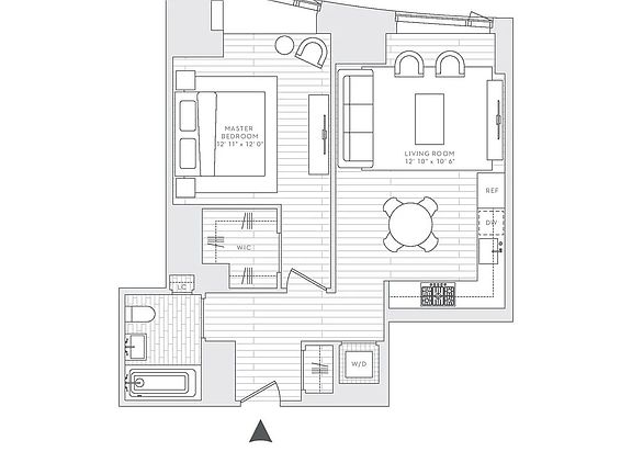 The thoughtfully designed layout features an open-concept living and dining area, perfect for both relaxing and entertaining. The custom chef's kitchen is equipped with high-end Bosch appliances, Italian cabinetry, and quartz countertops. The serene bedroom provides generous closet space, and the spa-inspired bathroom features refined fixtures and radiant heated flooring. Smart-home systems, in-unit washer/dryer, and wide-plank oak floors complete the luxurious interior.