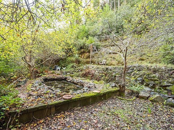 Oasis in the Redwoods! Main level has two bedrooms, 2 full bathrooms, fireplace, indoor utility room. Downstairs has separate entrance and a full bathroom-could be a separate studio/ADU. Privacy galore, once you get through your gates with 4.32 acres of Redwood Trees. Walk up the mountainside, there are trails throughout-they go way up the mountain, count hundreds of Redwood Trees. This home has several flat, useable, terraced entertaining areas, lined with innate rock walls. Enjoy the quiet, peace and tranquility, just above some of your neighbors, but with no one above you. Ferns galore, towering Redwoods, there is a six foot deep rocked pond in front of the house. Waterfall and Koi pond in front yard, by driveway. Needs a lot of work, heavy fixer, needs a new roof and outside stairs, PLUS the kitchen and all three bathrooms need remodeling, it needs new floor coverings and there is quite a bit of dry rot near windows and doors. Deck and railings also need repair. Then, however, you will have a great retreat/home that you can treasure for years to come. The front yard is not on a hill. It's flat to the front door. Remarkable rock work throughout. Upside is a beautiful SFD, duplex or retreat, comps are in the $600k's-$700k's.