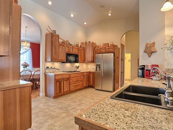 Phenomenal custom ranch w superior features & workmanship. Beautiful landscaping too. Southwest architecture. Wonderful kitchen. Great room w floor to ceiling FP. Sunroom. Patio w outdoor kitchen. Interior ceilings follow most roof lines adding character. Tile work is incredible. Sound system. Outdoor kitchen. Separate garage & workshop. AWESOME