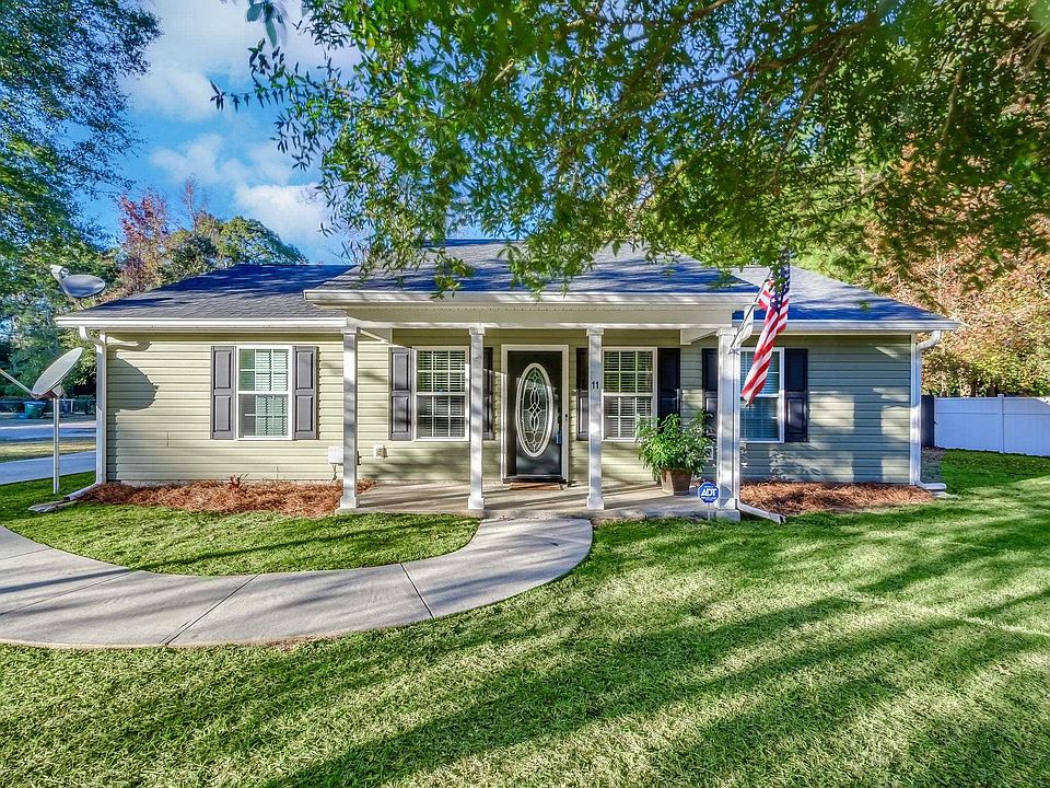 A Unique and Custom-built Home by Angler's Construction. If you're looking for a home that stands out from the rest, this one is for you! Situated on a spacious corner double lot, this property offers privacy with a fenced backyard and double gate to safely store your boat and trailer. The front porch is roomy, and the circular driveway has two entry ways to welcome your guests conveniently. Inside, the three-bedroom, two-bathroom split floorplan has an open concept design with beautiful tile flooring in the living room, kitchen, hallway, bathrooms, and utility room. The kitchen is well-lit with natural light and has updated appliances with stunning cabinets. The owner's suite is a luxurious retreat with vaulted tray ceilings, a double sink vanity, a soaking tub, tiled shower stall, and a large walk-in closet with a private commode. The guest bathroom has been freshly remodeled with new fixtures, chic tile work, and fresh paint. For added comfort, the home also features a tankless Rinnai hot water heater to ensure endless hot water. This gem of a spot is a ticket to the ultimate adventure! With A+ rated schools, Wakulla Springs, boat launches, beaches, hiking trails, parks, restaurants, shopping, and more, it's like living in a never-ending vacation. Don't miss the opportunity to see this one-of-a-kind home! Special Features: - Rinnai Tankless Hot Water Heater - Train HVAC System - Sights and Sounds House Sub-station - Double Lot - Privacy Fenced - Newer Appliances