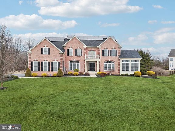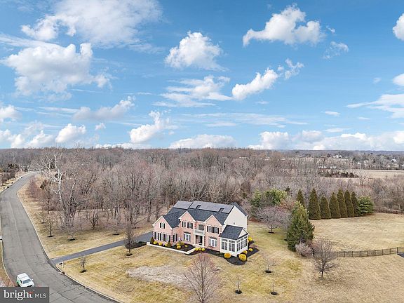 Nestled on a sprawling 1.93-acre lot, this extraordinary Colonial-style estate is set in the exclusive Providence Estates of beautiful Cream Ridge. The home offers unrivaled privacy, backed by lush woodlands, with privacy views from every side. The tranquil neighborhood is surrounded by protected land and oversized home lots, creating a serene and peaceful setting, perfect for enjoying the beauty of nature. As you enter the home, the interior immediately impresses with its superior craftsmanship and attention to detail. Swarovski crystal chandeliers illuminate the grand entry, highlighting the stylish custom moldings, stunning transom windows, and elegant tray and boxed ceilings. The soaring 2-story gathering room features an exquisite Swarovski chandelier, custom wall moldings, and stunning porcelain tile floors. The wall of palladium windows and transoms flood the space with natural light, offering dramatic views of the property and adding to the grandeur of the space. The cozy gas fireplace enhances the room’s inviting atmosphere. Hardwood floors extend throughout the entire first level, further elevating the home’s refined aesthetic. Multiple French doors add charm and sophistication, while floor-to-ceiling windows with transoms in most rooms ensure an abundance of sunshine fills the home with warmth and light. The sunroom, complete with beautiful tile floors, offers the perfect spot to relax while taking in the scenic surroundings. The formal living and dining rooms, both boasting hardwood floors, offer a welcoming atmosphere for gatherings. A first-floor office provides a quiet retreat, while the powder room ensures convenience and accessibility. The kitchen is a chef’s dream, featuring current-style quartz countertops, high-end Jenn Aire appliances, including a 6-burner stovetop, built-in refrigerator, wall and convection ovens, and microwave. The center island with stools creates a perfect space for casual dining, while the breakfast area, surrounded by a wall of windows, provides a serene setting to enjoy your meals. The home’s architecturally unique design includes a split staircase, ensuring the owners' suite and the princess suite each have their own wing for supreme privacy and seclusion. The generously sized owners' suite is a true retreat, offering a luxurious experience with private views from every angle, a tray ceiling, walk-in closets, and a cozy sitting area. The spa-like ensuite bathroom includes a Jacuzzi bath, dual vanities with granite countertops, and a spacious shower. With a total of 4 bedrooms and 4.5 bathrooms, this home offers ample space for family and guests. The Jack-and-Jill style bathroom and the princess suite provide comfort and convenience, while every bathroom is adorned with elegant granite countertops. The third bedroom features an impressive walk-in closet, large enough to satisfy even the most discerning of buyers. The lower level of this home is a true showstopper, designed to offer a custom, star-quality experience. A vast home theater with a high-end projection system and luxury seating provides the ultimate viewing experience. The full-length custom bar with quartz countertops and a stone façade adds an upscale touch to the entertainment space. Gorgeous porcelain tile floors continue throughout this level, which also includes a full bathroom, a home gym, a wine room, and a cigar room with a filtration vent. Recessed lighting, tray ceilings, and French doors further enhance the atmosphere of luxury, while a walk-up exit adds convenience. There is a spacious 3-car garage, providing ample room for vehicles and additional storage, offering both functionality and convenience. Incorporating cutting-edge sustainability, this home is equipped with solar panels that significantly reduce energy costs, covering the owners' electric bills and contributing to a more eco-friendly lifestyle. Additional amenities include a security camera sys, whole house gen. & central vac. new roof