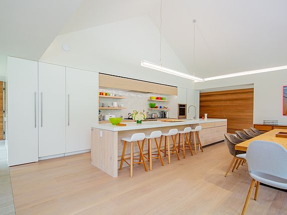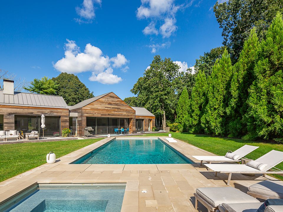 sq. ft. across three levels, carefully crafted design for the discerning eye. Behind a motorized gate, on an acre of manicured, park-like property, with walls of windows and open floor plan, not only is this house gorgeous but it is also high tech and has every amenity you could think of. All four main level bedrooms have motorized shades (regular and blackout) and Lutron lighting operated from a wall panel and bedside table, full bathrooms, TVs, and amazing closets with built-in systems. The primary bedroom suite has a walk out to a private deck, bathroom with a large shower and sunken tub, and a wall of generous closets. The kitchen, dining, and living areas are flooded with natural sunlight from floor to ceiling sliders and windows. The kitchen has Wolf and Sub-Zero appliances, concrete countertops, a 15-foot island, and dining for 10. The chic living room shares a double-sided fireplace with a sunken lounge with television. On the main floor you will also find one laundry room and a half bath. There are two levels below grade, one with a second laundry and Peloton, the other with a murphy bed, full bathroom, pool table, Pac Man video game, mirrored ballet room, and another lounge area with RH cloud sofa and TV. The amazing exterior has decks and patios with dining, grill and pizza oven, multiple lounge areas, a fire pit area, pool and spa, and an in-ground trampoline. To round out this spectacular home is a two-car garage and amazing outdoor shower.Available from 8/15/25 to 9/1/25 for $100,000