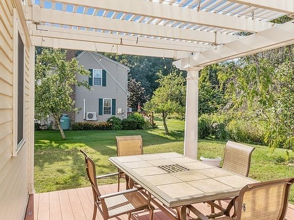 Welcome Home! This exceptional 3+ bedroom, 1.5 bathroom Colonial with Farmers Porch is located in a small cul-de-sac neighborhood. You'll love the spacious rooms, versatile layout, two story open foyer, custom woodwork, fireplaced living room, dining room with crown molding, open kitchen with granite counters, sun room with patio door leading to the deck, half bath and laundry complete the main level. Upstairs boasts a large primary suite with vaulted ceiling and private home office with gas fireplace, two additional bedrooms and full bath.. Unfinished lower level for storage or future potential and a 2 car garage. Set on a half acre lot with pergola, fruit trees, perennials, and irrigation. Easy access to downtown Leominster, Sholan Farms and all major routes.
