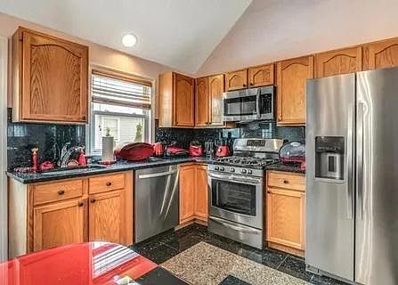 Beautiful house in one of the best communities in Malden. Huge open concept living and dining area with vaulted ceilings, 3 generous bedrooms with hardwood floors and closets, gutted & brand new 1st level full bath has marble floors and vanity. It's a two level split house. Upper level living room, kitchen, dining area, a full bathroom, 3 bedrooms. Lower level features giant family room with complete permitted in-law setup/kitchen, full bath, wood stove, sliders. Each level has separate deck. Vinyl exterior, 1 garage, parking 2 cars (open), heating and air conditioning. Beautiful private backyard. Close to Boston city and easy commute to Cambridge, Sommerville, Everette and Saugus. In close vicinity of shopping centers grocery stores (Market Basket, Walmart, Stop & Shop), Square one mall, entertainment centers, Encore Boston Harbor etc. Less than a mile away from US-1 which joins to I-93 and I-95 Bus stop (3 min walk) connection to Malden Station, Malden downtown, Saugus Center, Wellington Station. Mystic Valley Regional Charter School 0.6 mile Linden School 0.5 mile Forestdale - 1 mile Salemwood 1 mile Malden high school 1.8 mile Tenant pays for water, electricity and gas. No pets allowed.