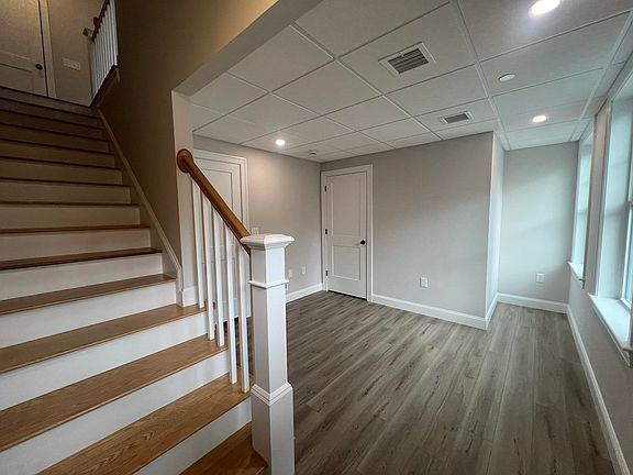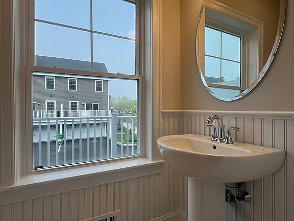 NEW CONSTRUCTION! Welcome to Juniper Commons, a new 50-unit townhome pocket community in a great Portsmouth location. Abutting vast wooded conservation land, this beautifully landscaped community feature this three bedroom, three bath townhome! This is a Ruby plan END UNIT! The two-car garage entry leads into a finished first floor space ideal for an office, or mud/storage area. Up the hardwood stairs the living level is an inviting open layout with high ceilings, hardwood flooring, and great natural lighting. The spacious living and dining area opens to a beautifully finished kitchen including cabinetry to the ceiling, pantry storage, oversized island, stainless appliances, and high end stone countertops. Sliding glass doors off the kitchen leads to a private deck space. The third floor has three bedrooms and two baths, including a primary suite with walk-in closet, and bath with tile shower and glass enclosure. Hardwood flooring throughout all bedrooms and living areas. Central air. Professionally landscaped community with community park, sidewalks, and trail leading to the lush wooded open space behind the homes for all to enjoy! Only 1 of 2 units left in this community!