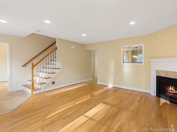 Act now and be home for the Holidays! Sunny town home at popular BELLA WOODS CONDOMINIUMS. Open floor plan for easy living: spacious living room with gas fireplace, eat-in kitchen with upgraded cabinets, center island w room for bar stools, granite counters + a large dining area, stainless appliances, walk-in closet, pantry + sliders to a private patio overlooking the woods. Dining room could easily be a 3rd bedroom with its adjacent full bath. Upstairs is a grand master bedroom with 3 walk-in closets, cathedral ceiling, picture window, paddle fan and private master bath + another large bedroom and large den. Terrific 3rd floor bonus room with additional storage. Gleaming hardwood floors throughout, 2 zones of high-efficiency gas heat, on-demand hot water, central vac, 1 car garage + deeded driveway parking. Excellent professional property management. Association with strong reserves & no special assessments! 1 pet allowed. Easy access for Rtes 93 & 495. Call today!