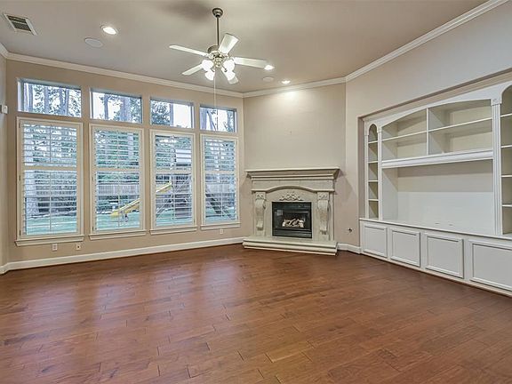 Stunning home on an oversized lot is located in the gated, Manor Estates section of Gleannloch farms. NO BACK NEIGHBORS! This home features a hard to find FOUR car garage and two bedrooms down. All bedrooms have a private bathroom. Grand entrance with high ceilings and lovely chandelier. Home office with custom built-ins. Formal dining room with tray ceilings and wine alcove. Spacious kitchen opens to living room. Tray ceilings and crown molding continue in the beautiful living room. Living room boasts wall of windows overlooking the lushly landscaped yard, cast stone gas fireplace & built-ins. Kitchen w/natural wood cabinets, double oven, gas cooktop and granite countertops. Relaxing primary suite with spa-like bathroom and large walk-in closet. Generously sized secondary bedrooms. Hardwood floors in majority of home (no carpet!). Plantation shutters throughout! Gate access in yard leads to pool, splashed etc. Don't miss out on this fabulous home!