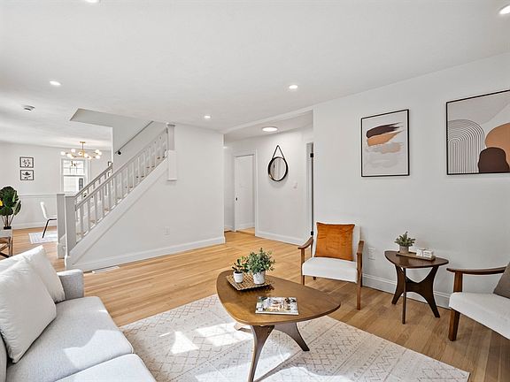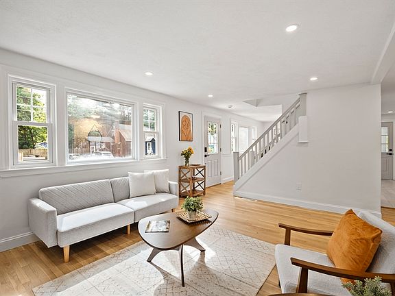 Welcome to 11 Kevin St, a beautifully updated 4 bed, 2 bath home in a family oriented subdivision in Tewksbury! The newly remodeled kitchen features quartz countertops, stainless steel appliances, a designated coffee bar, wine cooler, and a hood vent. A main level bedroom has versatile uses. Main bedroom has a walk-in closet with custom built shelving. Recessed lighting throughout. Both bathrooms have been fully updated with tiled tub and shower. Fireplace in the living room. The finished basement provides additional living space for a family room, gym, play room, or whatever you choose. A new heat pump provides central air, and central heat. More upgrades include: new plumbing, new water tank, and a tie-in to the town sewer. There is an oversized mudroom with custom built-ins that leads out to the deck and backyard. Conveniently located near schools, parks, shopping, and local research and development companies, 11 Kevin St offers modern updates and comfort.