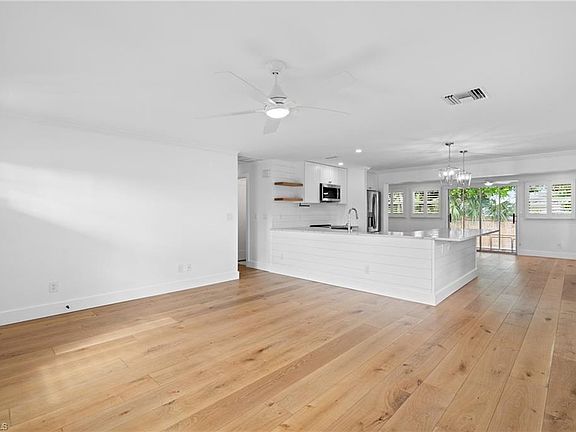 DID NOT GET WATER FROM MILTON OR HELENE! Incredible opportunity to own a piece of paradise at an unbeatable price! Nestled in a hidden gem neighborhood just minutes from downtown Naples, this stylishly updated 2-bedroom + den, 2-bath home offers 1,296 sq. ft. of open-concept living, thoughtfully designed with chic, modern touches throughout. Step inside to find elegant wood flooring, a bright and airy layout, and a stunning kitchen with sleek quartz countertops and new stainless steel appliances. High-end finishes and thoughtful details provide the perfect balance of comfort and sophistication. Enjoy peace of mind with a newer roof (2019), and unwind in the beautifully landscaped backyard featuring a stone paver patio—ideal for outdoor entertaining or peaceful relaxation. Located just minutes from Naples’ pristine Gulf beaches, the world-class shopping, dining, and nightlife of 5th Avenue, 3rd Street South, and the vibrant Bayshore Arts District, this home delivers the best of Florida lifestyle living.
